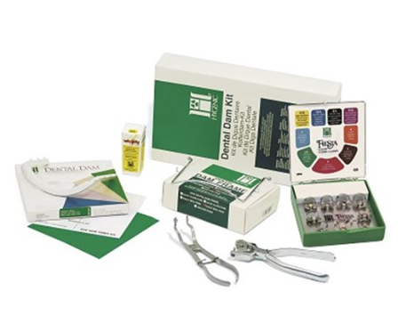 All in one dental dam kit - including dental dam sheets, clamps and accessories