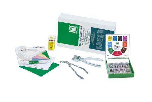 All in one dental dam kit - including dental dam sheets, clamps and accessories