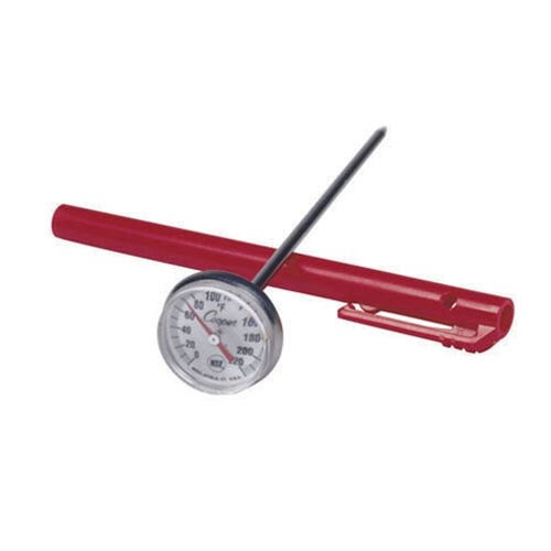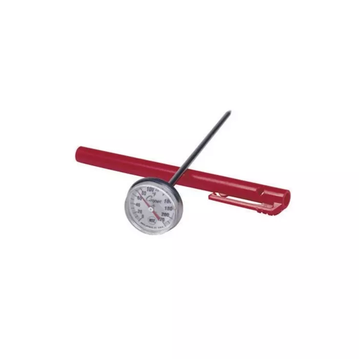 The 1246-02 Bi-Metal Pocket Test features a red protective sheath with anti-microbial additive, adjustment tool and pocket clip. NSF certified.
