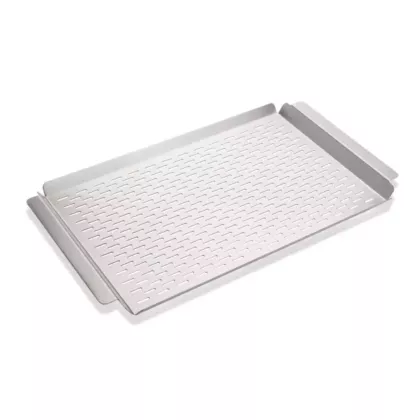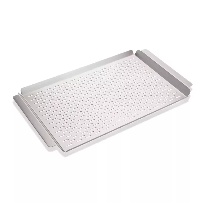 For cooking vegetables or fish on your outdoor charbroiler grill, use this perforated grilling tray! It's made of durable 16-gauge stainless steel, and will prevent delicate items from falling through the cooking grid.
