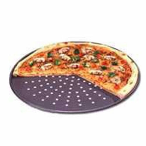 The strength of a pizza pan, with the airflow of a screen. Holes allow heat to penetrate the pizza crust directly, while at the same time steam can easily escape. Combined effect produces a nice toasted brown crust.