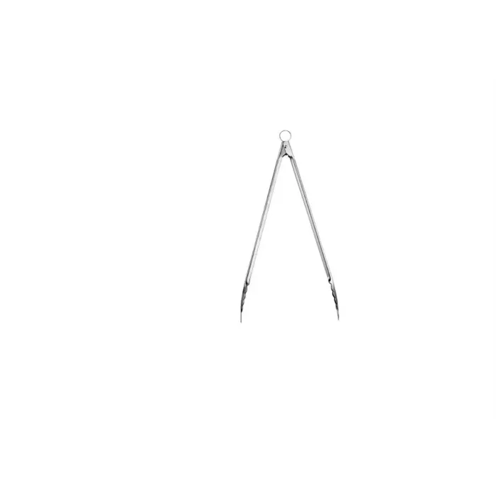 Designed to handle both cooking and serving tasks with ease. Patented locking pull mechanism. Push to open. Pull to lock. Tongs can be opened with one hand. Loop for hanging. Commercial-quality stainless steel. Dishwasher safe.