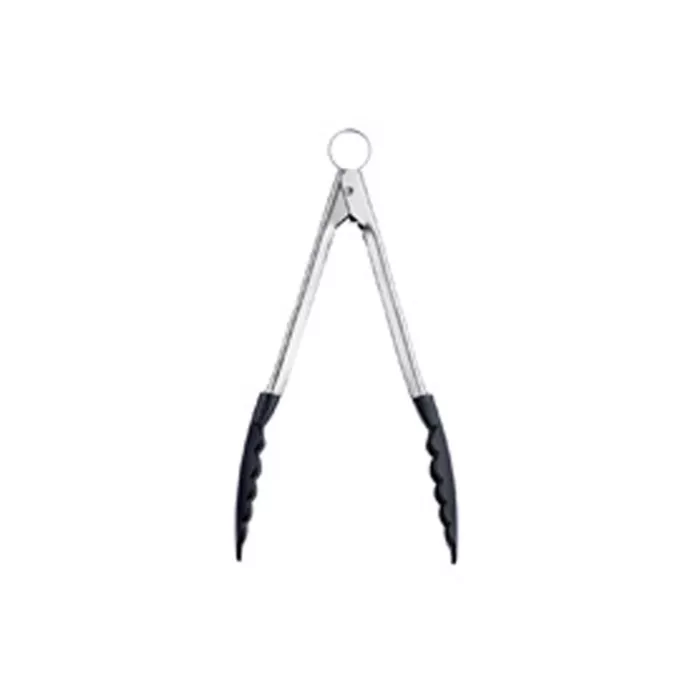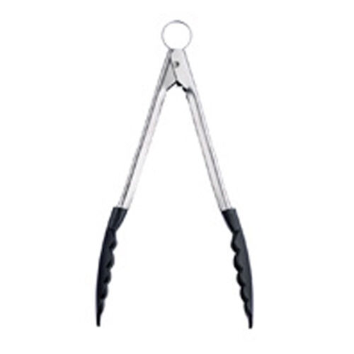 Stainless steel with satin finish. Non-stick nylon ends. Heat-resistant to 390°F/200°C. Patented combination spring and locking mechanism. Hoop for hanging. 1.0 mm thickness.