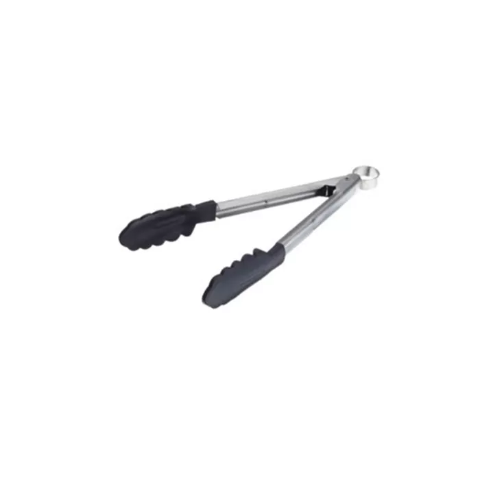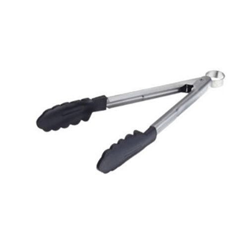 Designed to handle both cooking and serving tasks with ease. Patented locking pull mechanism. Push to open. Pull to lock. Tongs can be opened with one hand. Loop for hanging. Non-stick silicone ends heat-resistant to 575°F/300°C. Commercial-quality stainless steel. Dishwasher safe.