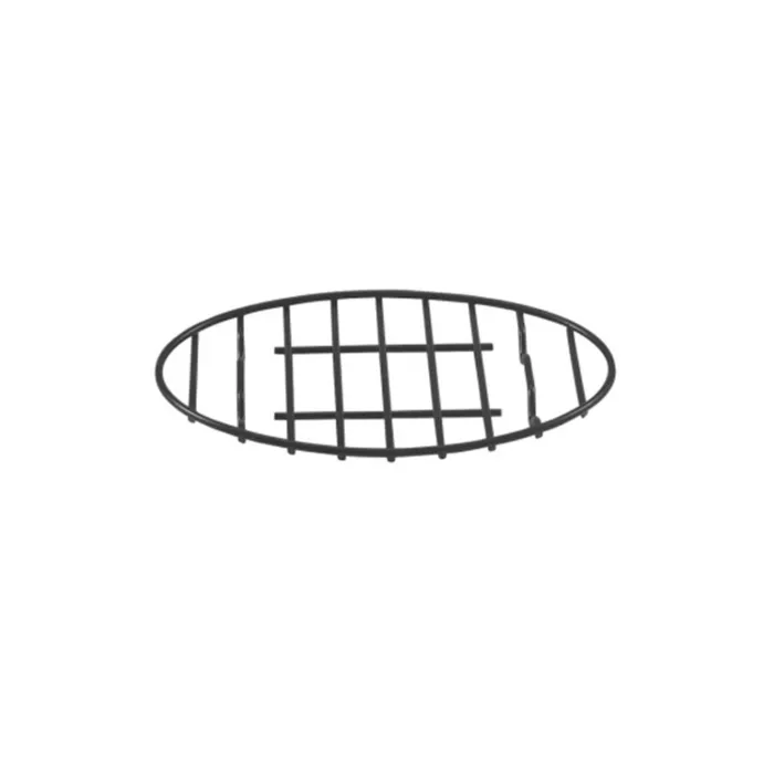 Oval Rack, 6" x 9", black, non-stick coated. Integrated feet keep food elevated above fats. Oven and dishwasher safe.