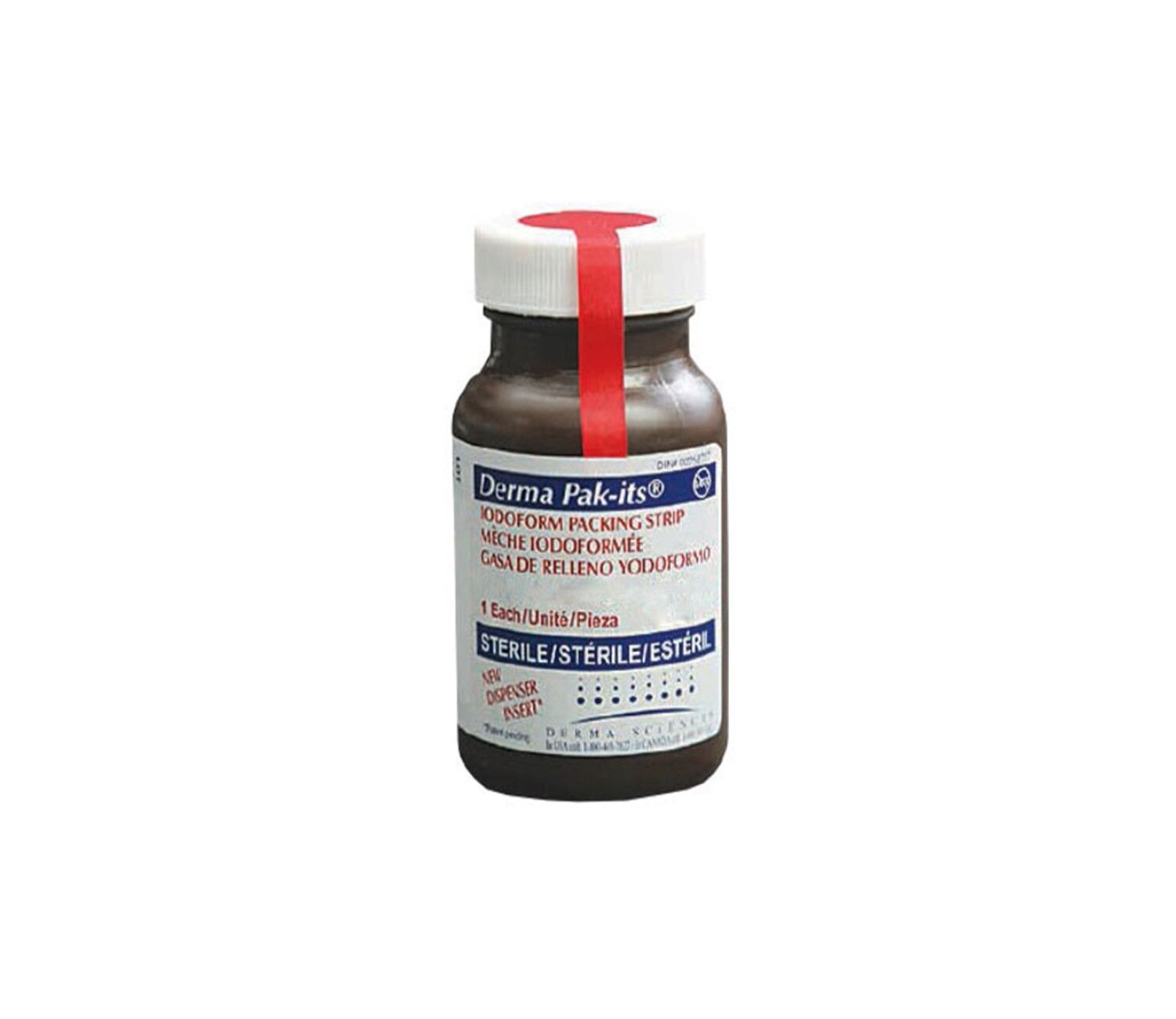 The Derma Sciences Iodoform Packing Strip with Dispenser  is a premium sterile gauze strip infused with iodoform, a powerful antiseptic designed to help prevent infection and promote healing in deep or tunneled wounds. Each strip is made from 100% cotton, ensuring softness, absorbency, and minimal linting.
