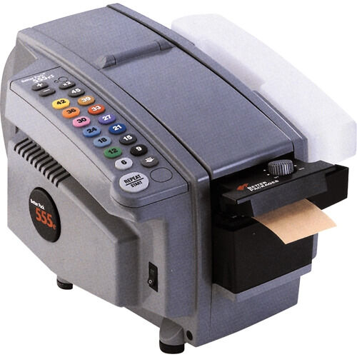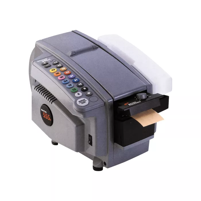 - Le Better Pack 555eS se caractérise d'un système de contrôle tout électronique avec 14 clés à 3" de distance. La longueur du ruban est réglable à 1/2" (vers le haut ou vers le bas). La clé 2X double la longueur maximale déroulée à 90". Les rouleaux de ruban très longs sont faciles à insérer dans le cadre d'acier robuste recouvert de plastique ABS. Un chauffe-ruban sur le dessus et des dispositifs de protection pour l'opérateur sont intégrés. Conformes aux normes CE, ULC et UL. Le modèle Better Pack 555eSA est muni des mêmes caractéristiques que le 555eS avec une programmation supplémentaire.