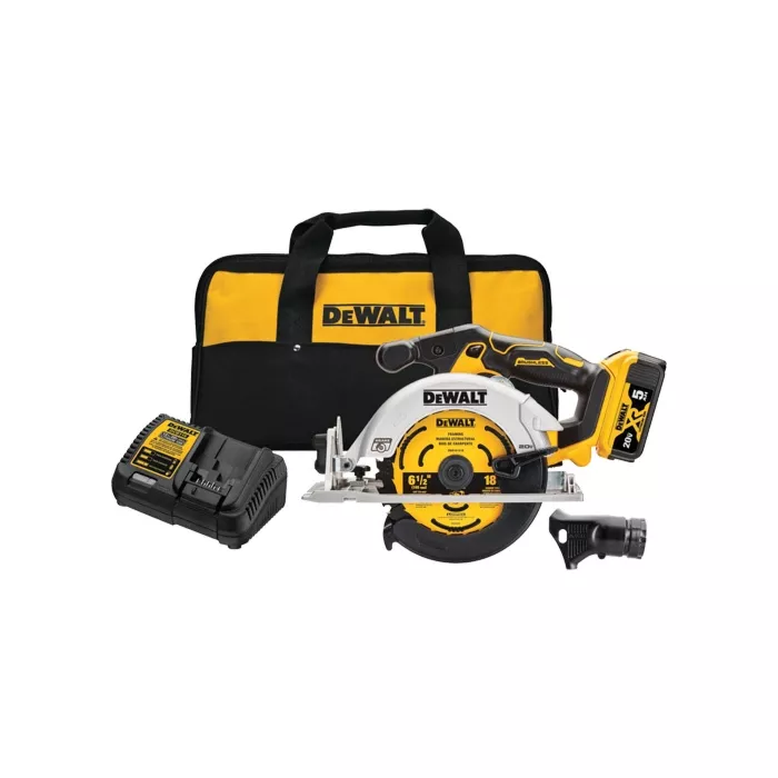 - Comprend : scie circulaire 6-1/2" à moteur sans balai sans fil 20 V Max*, lame de scie, clé de changement de lame, goulotte à poussière en option, chargeur, batterie au lithium-ion 5,0 Ah 20V Max*, sac de transport