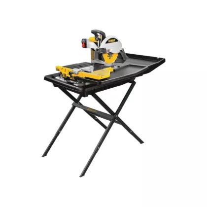 - Cette scie à carreaux comprend un support pliant et bénéficie d'une garantie limitée de trois ans
