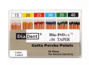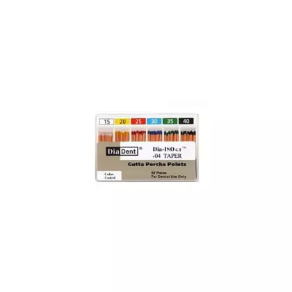 Les Points de Gutta Percha DiaDent Dia-ISO GT 0.4 Taper Non Marqué #15/40 sont des points endodontiques de haute qualité conçus pour la précision et l'efficacité dans les traitements de canal radiculaire. Ces points de gutta percha présentent un cône de 0.4, assurant un ajustement optimal et une excellente étanchéité dans le canal radiculaire. La conception non marquée garantit une surface lisse et uniforme, et l'emballage anti-déversement maintient la stérilité et facilite la manipulation. Chaque boîte contient 60 points, couvrant une gamme de tailles de #15 à #40, offrant une solution polyvalente et économique pour les professionnels dentaires.