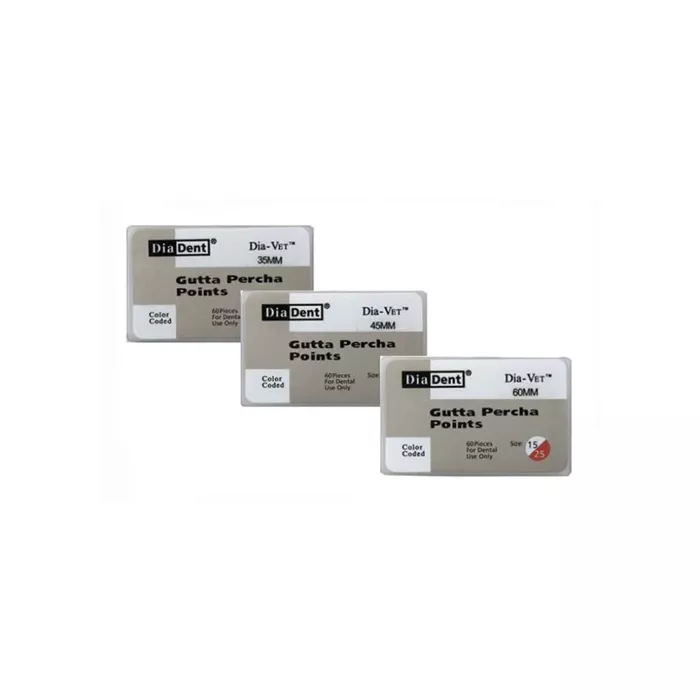 Les Points de Gutta Percha DiaDent Dia-Vet Oversized 35mm Spill Proof #35 sont conçus pour les applications dentaires vétérinaires, offrant une solution fiable et efficace pour les traitements de canal radiculaire chez les animaux. Ces points de gutta percha surdimensionnés sont fabriqués pour s'adapter aux canaux radiculaires plus larges couramment rencontrés en dentisterie vétérinaire. L'emballage anti-débordement garantit la stérilité et facilite la manipulation, en maintenant l'intégrité et l'organisation des points. Chaque boîte contient 60 points de gutta percha, offrant une option pratique et économique pour les pratiques dentaires vétérinaires.