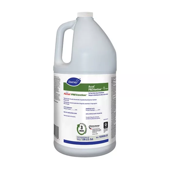 Overviewis an effective and convenient solution for maintaining a clean and hygienic environment. This disinfectant is designed to quickly kill a broad range of pathogens, including viruses, bacteria, and fungi, and is ideal for use in healthcare facilities, schools, and other high-traffic areas. With its fast-acting formula, this disinfectant can help reduce the spread of infectious diseases, and its large 4L size makes it a cost-effective choice for any facility. Keep your environment safe and healthy with Diversey Accel Prevention Ready To Use Surface Disinfectant. Shop now at Linen Plus!