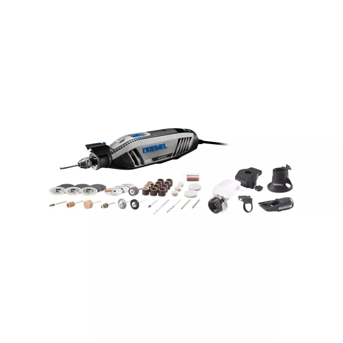 - Comprend: (1) outil rotatif Dremel 4300, (1) écran de protection A550, (1) guide de ponçage/rectification A576, (1) guide de coupe 565, (1) affûteur pour outils de jardinage 675, (1) mallette de rangement