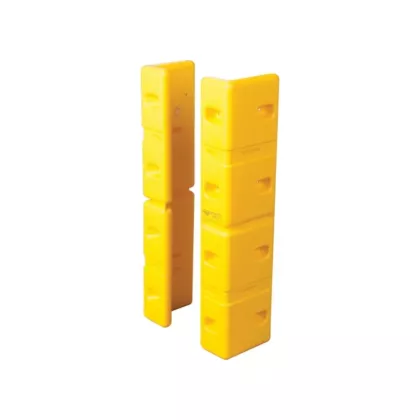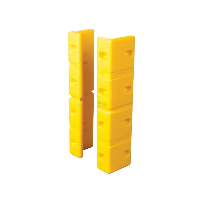 - Protecteur de coin qui prévient les dommages aux murs dans les zones de circulation des chariots élévateurs, diables et autres dans un entrepôt