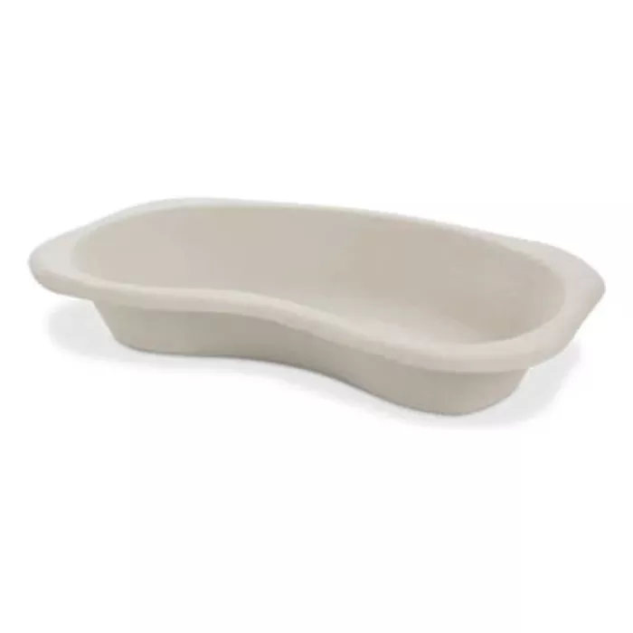 Standard hospital kidney dish, versatile vessel. Easy to handle: flat bottom and top surfaces with small rim. Easy to carry.