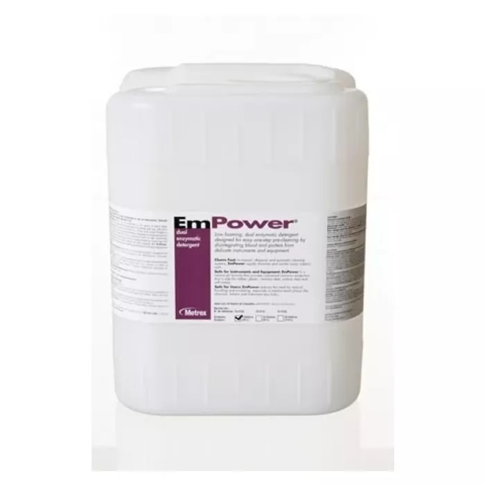 Le nettoyant enzymatique pour instruments EmPower est une solution puissante et efficace pour le pré-nettoyage des instruments médicaux avant la stérilisation. Ce fût de 5 gallons contient une formule enzymatique double qui décompose et élimine les matières organiques telles que le sang, les tissus et le mucus. EmPower garantit un nettoyage complet des instruments, améliorant ainsi l'efficacité des procédures de stérilisation ultérieures. Il est idéal pour les établissements de santé, les laboratoires et autres environnements médicaux où la propreté et l'hygiène sont primordiales.