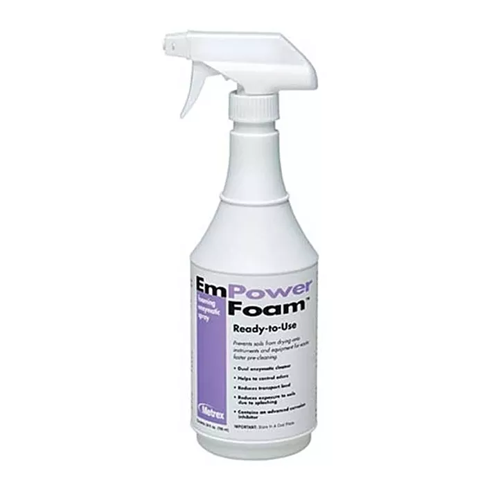 L'EmPower Foam Nettoyant Prénettoyant Enzymatique Double pour Instruments est une solution de prénettoyage très efficace pour les instruments médicaux et dentaires. Cette bouteille pulvérisatrice de 710 ml (24 oz) contient une formule enzymatique double qui décompose les protéines et autres matières organiques, garantissant un nettoyage minutieux et la préparation des instruments avant la stérilisation. L'EmPower Foam est simple à utiliser et améliore l'efficacité du processus de nettoyage dans les environnements de soins de santé.