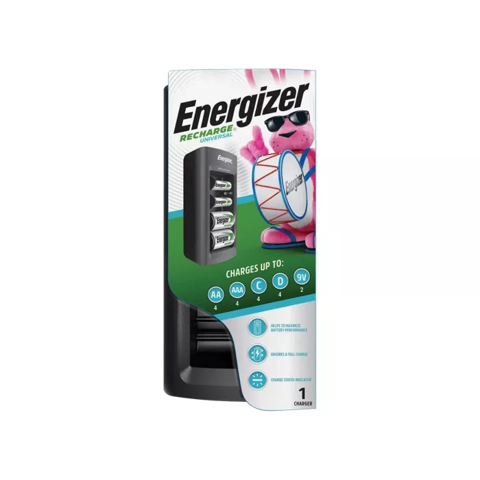 - Charge jusqu'à 8 piles rechargeables NiMH AA, 8 AAA, 4C, 4D ou 1 pile 9 V