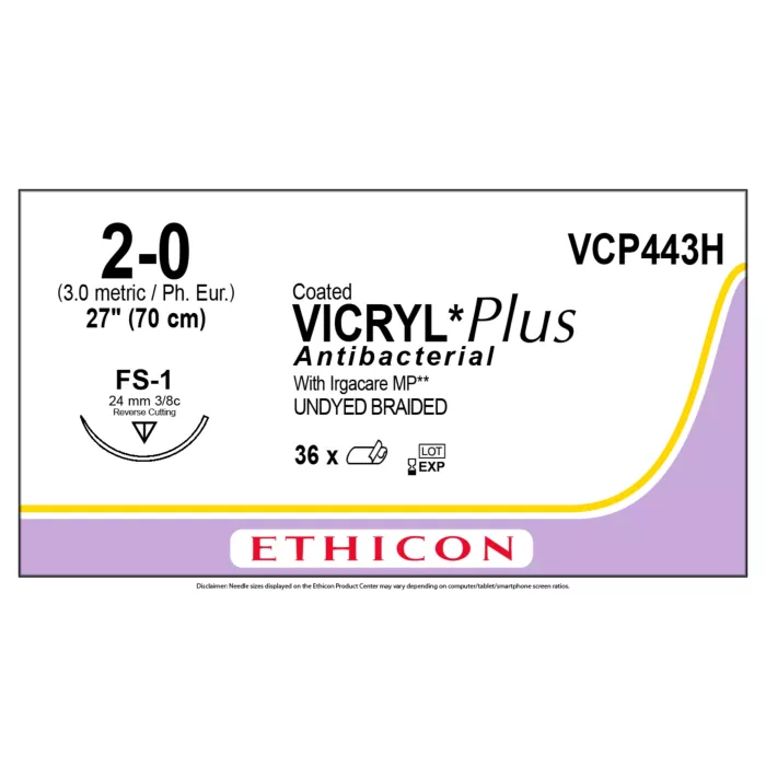 COATED VICRYL Plus, antibacterial suture, polyglactin 910 suture, wound closure, absorbable suture, surgical suture, FS-1 needle, TRICLOSAN suture, 2-0 suture, 27-inch suture, infection control suture.