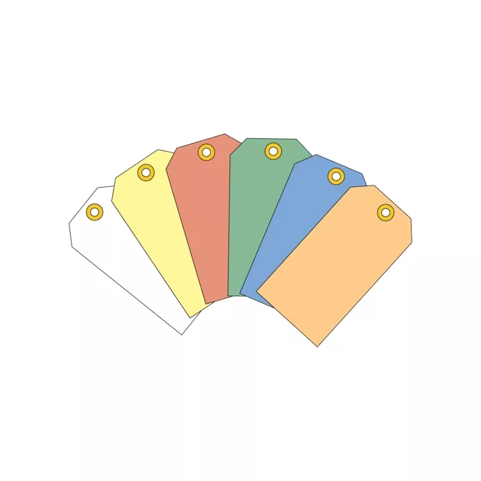 - Étiquettes vierges de couleur en papier cartonné 13 points avec oeillet renforcé 3/16"