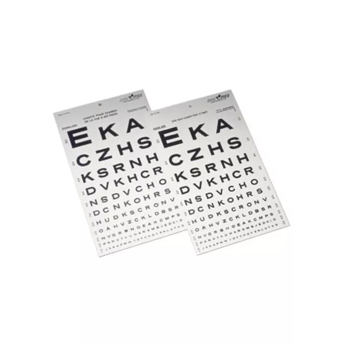 • 10 foot test distance • Black print on white vinyl • One side English, One side French • Metal eyeletVue d’ensemble
