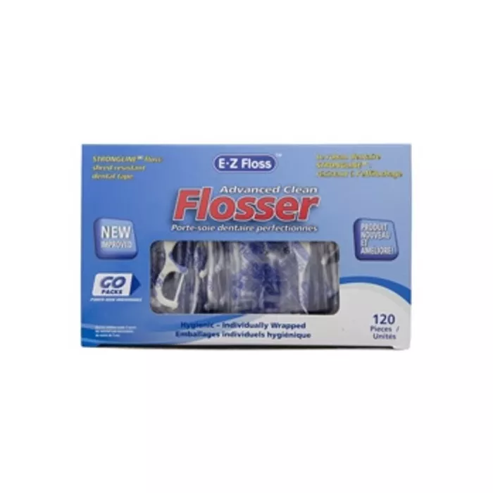 EZ Floss Advanced Clean Flossers are a convenient and effective way to keep your teeth and gums healthy. Each flosser is individually wrapped for easy use on-the-go. With a unique design that features an angled head and a comfort grip handle, these flossers make it easy to reach tight spaces and remove plaque and debris. The advanced clean floss is coated with a special wax that slides easily between teeth, making flossing more comfortable and effective. This box contains 120 flossers, making it a great value for anyone looking to improve their oral hygiene routine.