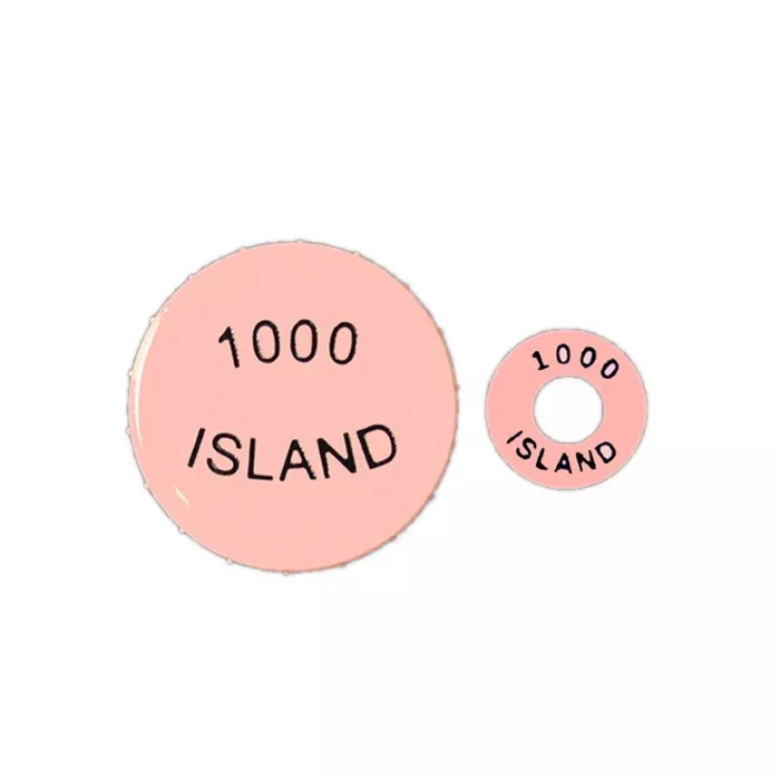 Labelled sauce and dressing cap and disc for FIFO bottles.