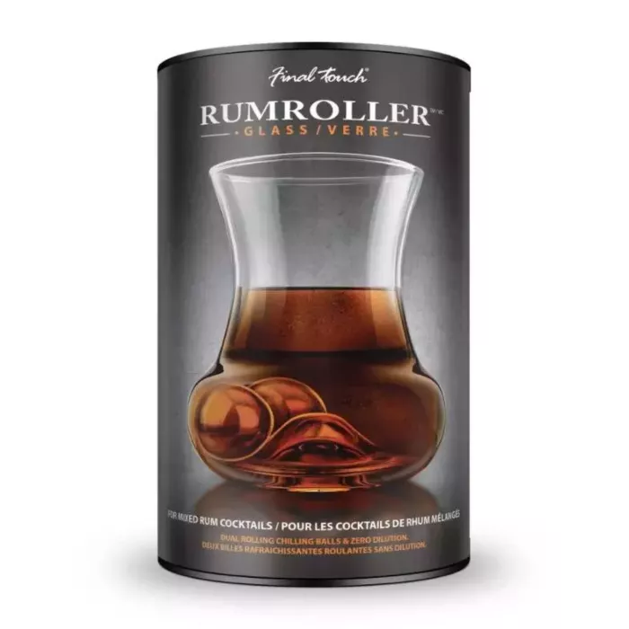 Final Touch 20 Oz RumRoller Chilling Glass with Tongs & 2 Stainless Steel Chilling Balls