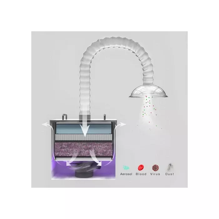 The Overview is specifically designed to capture and filter aerosols generated during dental procedures, helping to reduce the risk of contamination and promote a clean and safe environment for both dental professionals and patients.