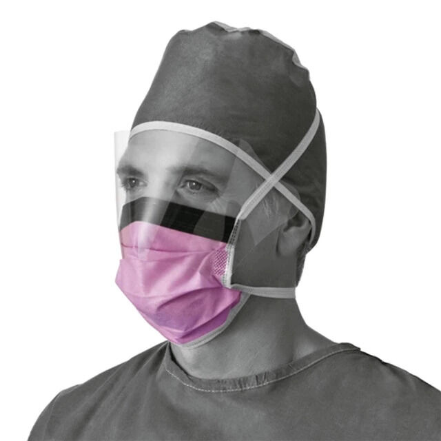 - Deluxe, 4-ply, surgical mask is enhanced with premium features including attached eye shield, antifog foam, anti-glare strip and antifog shield