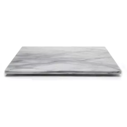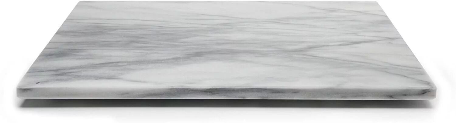 This beautiful White Marble Pastry Board is perfect for any baker or pastry chef! Cool and smooth marble provides an ideal surface with its natural non-stick properties No need to add an abundance of flour down before rolling or kneading Suitable for biscuits pies tarts pizzas pastries and many more This solid marble board is elegant enough to be kept out on display in your kitchen when not in use The board itself measures 1/2" thick Plastic feet on the bottom provide protection for your countertop Exceptional results with any type of dough are promised with this marble pastry board!