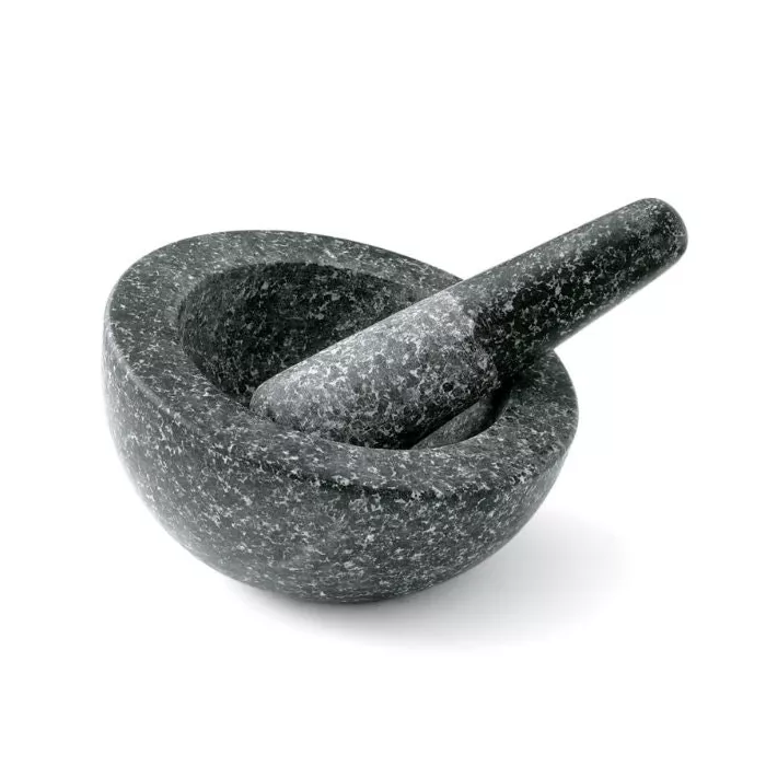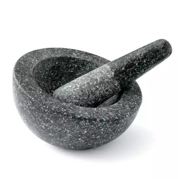 • Premium quality granite mortar is heavy, well balanced and suitable for rigorous pounding and grinding.
