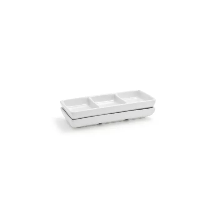 Front Of The House 6" x 2.5" Three Compartment Rectangle Dish, 1 Oz /Compartment, White 12 /Case