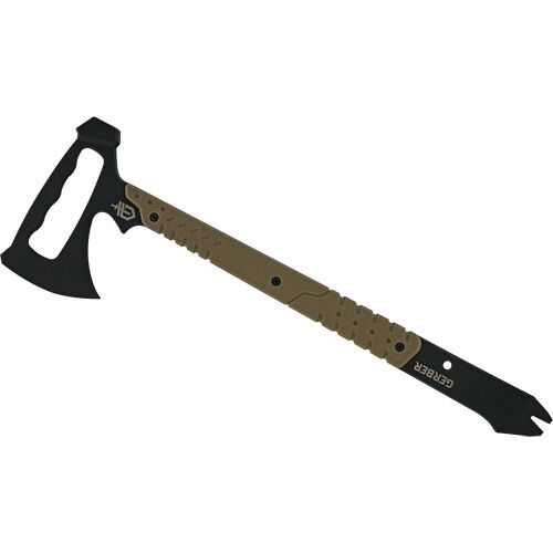 - Hache à trois fonctions munie d'une bordure biseautée, une surface pour marteler et un manche à levier