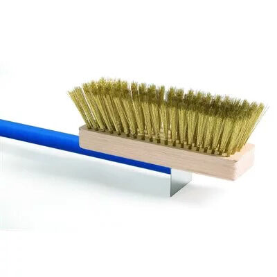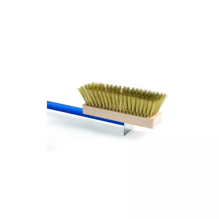 Professional brush with brass bristles and rear stainless steel scraper. Aluminium anodised handle. The brass bristles allow fast and more efficient cleaning of refractory stone from food residues, flour, or ash. The swivel head of the brush allows reaching any area of the oven. The rear scraper in stainless steel allows removing any residues burnt onto the cooking floor of the oven