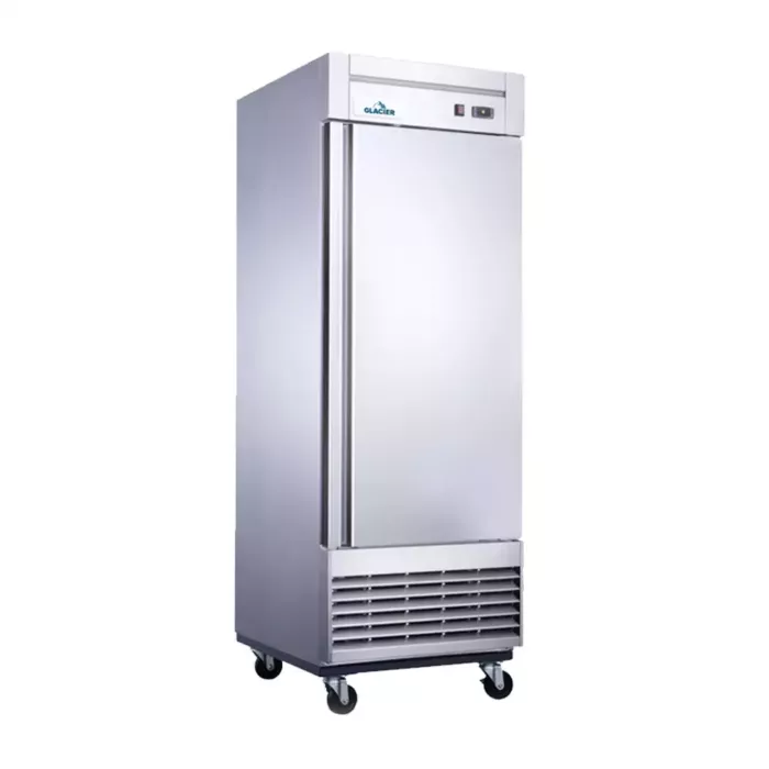 The door is accented with high-quality brushed stainless steel, as well as the interior and exterior, to fit a variety of decors. Recessed door handles allow for clean styling and improved ergonomics. The door is field reversible. The heavy-duty compressor is bottom mounted for excellent efficiency and better cooling. Digital controls fine-tune the desired interior temperature. Self-closing doors provide added convenience and ease of use. Auto-defrosting provides lower energy costs and colder temperatures. Shelves can be adjusted or removed for flexibility and maintenance. Swivel casters allow the unit to be easily moved for cleaning.