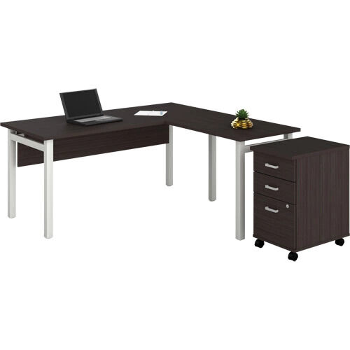 Global Bureau en "L" avec caisson Newland, 29-3/5" X 66" X 66", Brun foncé (NLP231 DES)