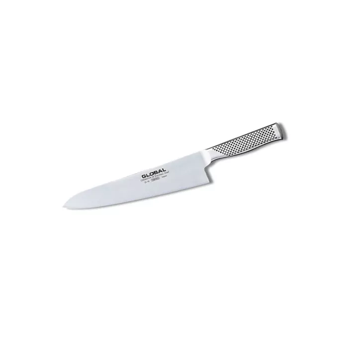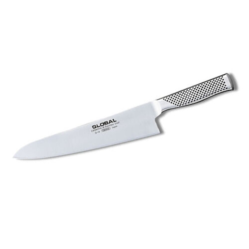 This Cook's Knife is the perfect tool for jobs that require precision cutting, slicing, chopping and dicing. Global knives are made from the finest stainless steel material. The blades utilize molybdenum/vanadium stainless steel, which is ice tempered and hardened allowing it to hold a razor sharp edge longer than any other steel. Sturdy, wide blade with a weighted handle that is perfect for completing any task in the kitchen. Ceramic sharpening steel recommended.