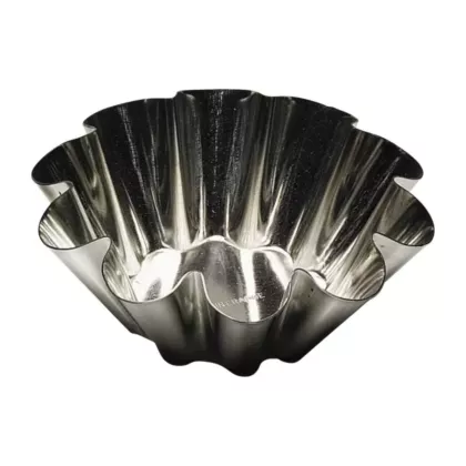 Brioche / tart mold with a 3" diameter. Fluted. Flat bottom. Tin construction.
