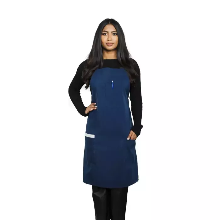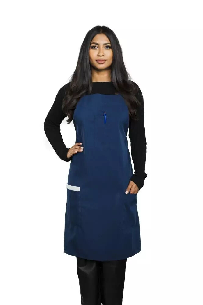 Poly spun (polyester) bib apron. This is a heavy duty bib apron. With loop for neck and waist ties. Approximate length (knee length or below). This is our most basic high volume bib apron. Found in hundreds of restaurants across the country. Very Durable at a budget price.Linen Plus® Risk-Free 100% Satisfaction Guaranteed.