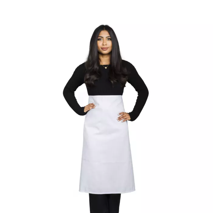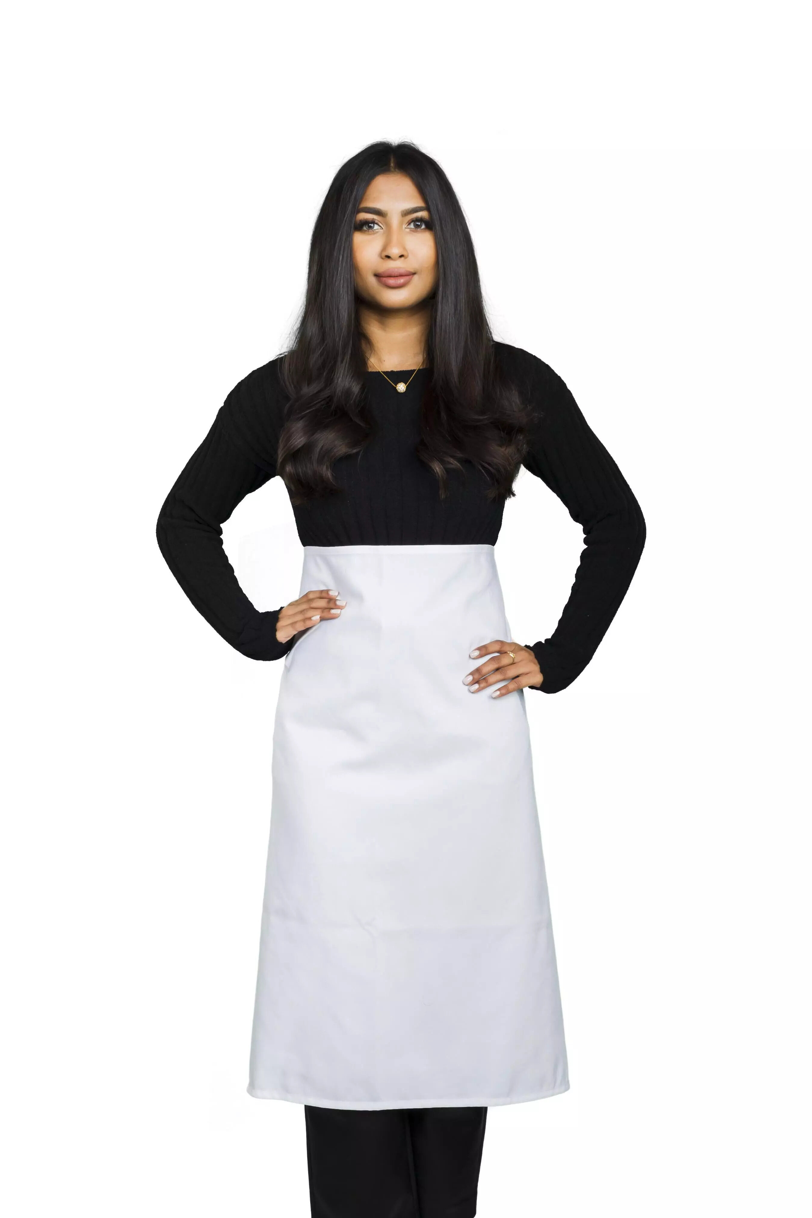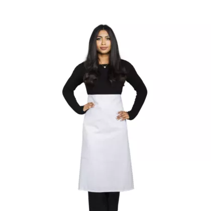 It offers a sleek, clean look and will help create a sophisticated appearance in any establishment. Kitchen staff will look picture perfect staying on top of hot coffee and ice water refills, running steamy tomato soup specials, and topping apple pie with a dollop of whipped cream in this white apron.