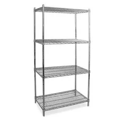 Chrome shelving kit includes: (4pc.) 24” x 60” shelves, (4pc.) 72” segmented posts, (16pc.) Clips, (4pc.) Levelers