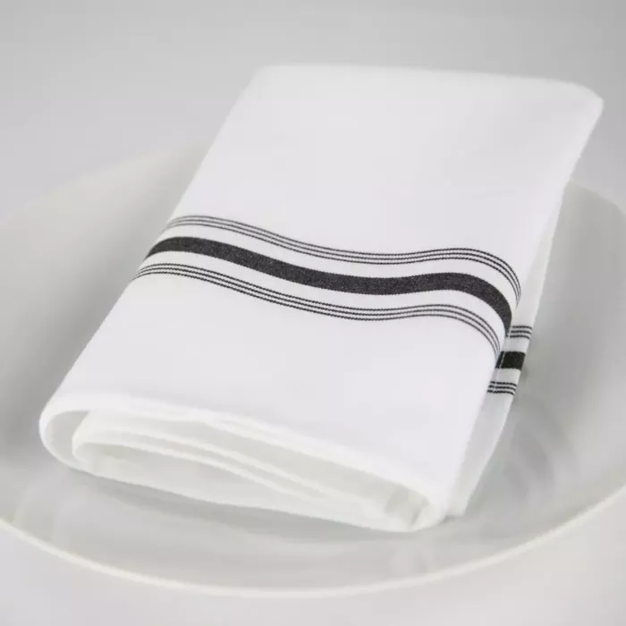 Signature Stripe is a bistro napkin made with Milliken Signature USA fabric and designed for softness and minimal linting and shrinkage. Linen Plus® Risk Free 100% Satisfaction Guarantee.
