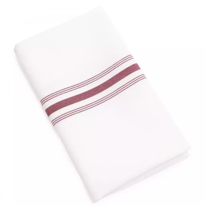 Harmony X™ Bistro Napkin,100% Spun Polyester, 18"x22", White with Maroon Stripes, Hemmed Finished