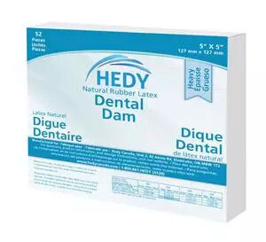 52 (5" x 5") or 36 (6" x 6") dental dams per box