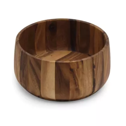 Serve salads in style. Made of gorgeous Acacia hardwood, this tulip-shaped salad bowl is functional and beautiful due to its rich, shimmering colors. Its classic, wooden construction will look incredible on your kitchen table and is perfect for a medium-sized salad. A serving piece that will double as a charming centerpiece.
