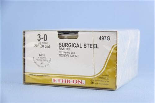 J&J Ethicon Suture 497G, Surgical Steel 3-0, CP-1, 20", 12/box