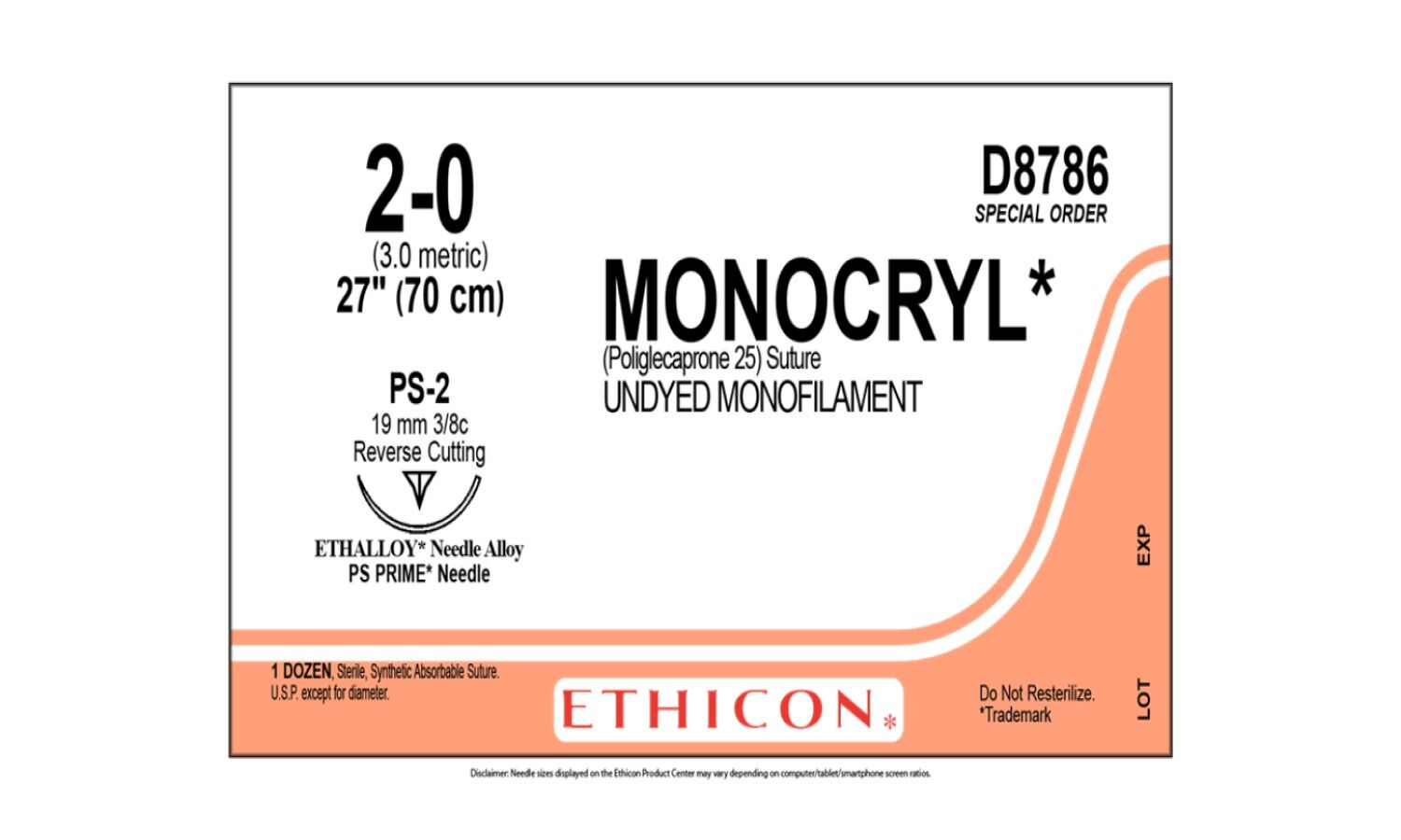 Description 2-0 MONOCRYL UNDYED 1X27" PS-2