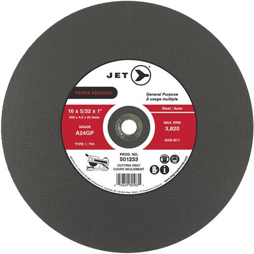 JET Meule à tronçonner Power Abrasive A24GP, 20" X 5/32" X 1", 3000 Tr/min max., 1 Type (501243)