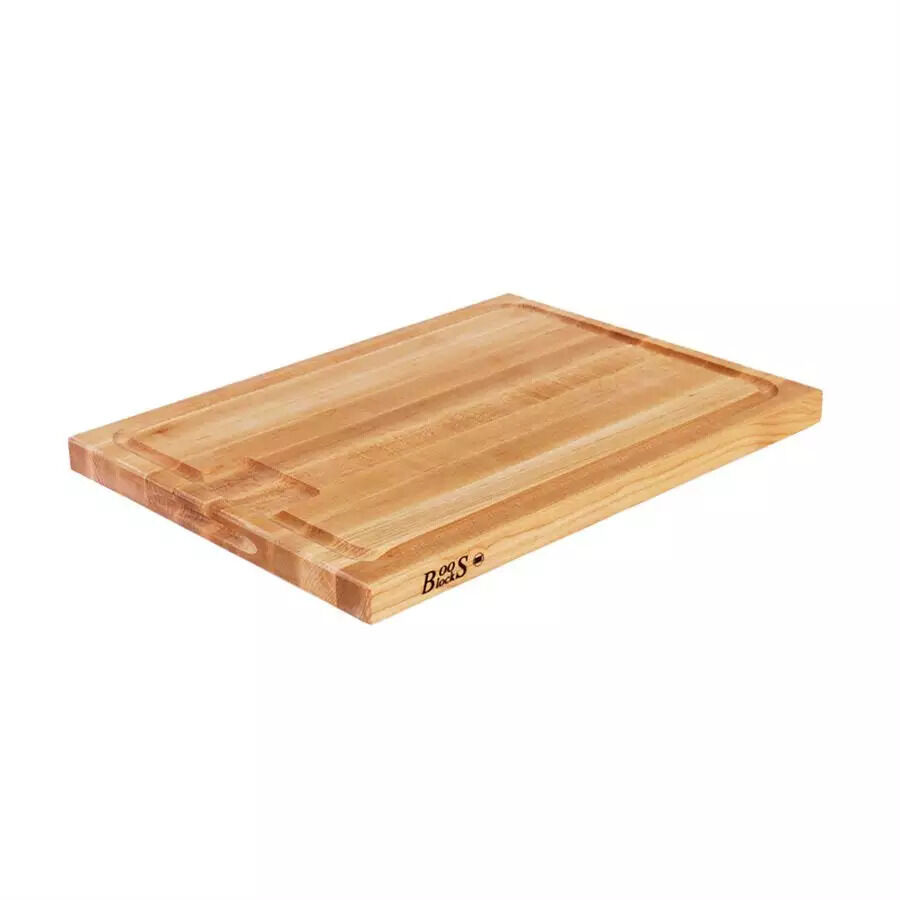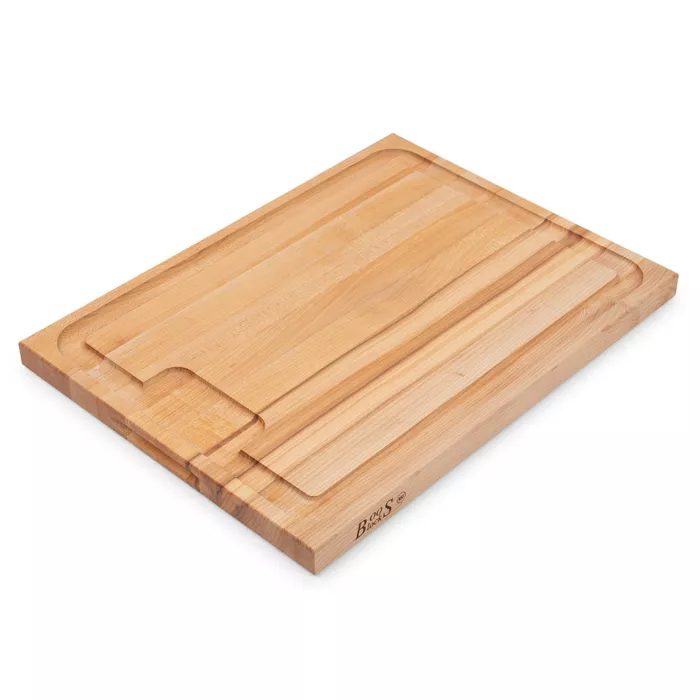 Cut it, prepare it, serve it with the John Boos AUJUS Maple Reversible Cutting Board! The Maple Cutting Board features a sloped juice groove that prevents liquids from spilling onto your countertops while allowing you to collect the cooked juices for a delicious auju broth. The NSF Certified cutting board is 1.5” thick and is reversible with a flat surface for any other food preparation needs. Cutting boards include handcrafted finger grips on the side of the cutting board. Handcrafted from sustainable Northern Hard Rock Maple.